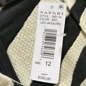 NWT Natori Leo Jacquard Pencil Skirt Womens 12 Cream Black Stripe Straight NEW