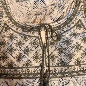 This Natura Women’s Size Small Maxi Bohemian Style Dress in green and blue features a sleeveless design with a V-neckline. It is made from viscose material and has an oversized fit, making it perfect for travel, parties, or casual outings. The dress includes tasseled accents and has a pullover closure, hand wash only. With its long length and bohemian theme, this dress is ideal for the summer and spring seasons. Made in India, it embodies a unique and stylish character, like an angelic presence. Oversized
