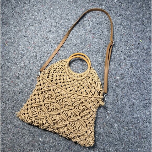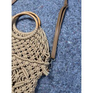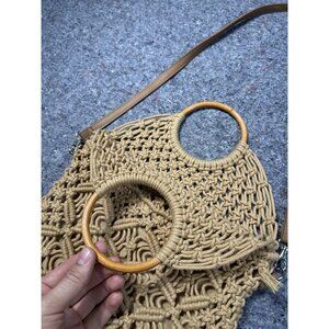 NWT Natural Crocheted Crossbody Purse with Bamboo Handles
