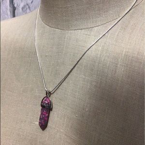 NWT Natural Gemstone 18”Chain & Pendant Pointed Chakra Hexagon Pink Gray