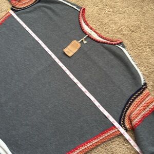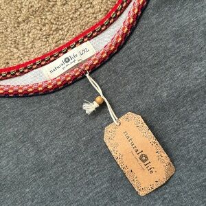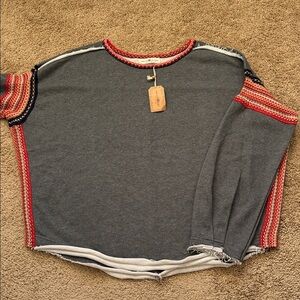 NWT Natural Life Knit Trim Crewneck Sweatshirt Grey Red L/XL
