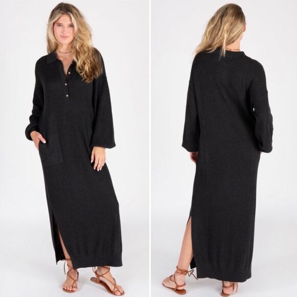 NWT Natural Life Long Sleeve Rib Knit Maxi Sweater Dress Charcoal Size S/M NEW