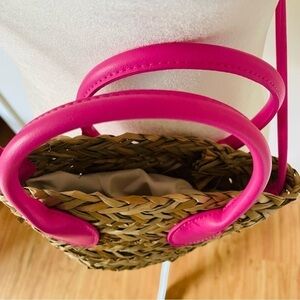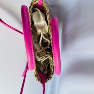 NWT Natural Straws Crossbody Bag / Shoulder Bag - Beige and Bright Pink - Barbie