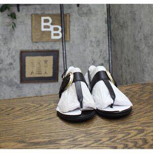 Barely-there flat sandals with both an oversized and adjustable buckle Leather or synthetic upper with T-strap styling and a round open toe Adjustable buckle closure Contour+ Comfort technology for a premium fit and all-day comfort experience 1/4 inch platform, 1/2 inch heel
