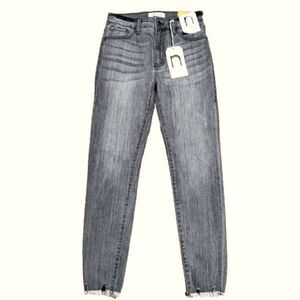 NWT Nature Denim Womens Sz 5/26 Estilo Skinny Ankle Demin Jeans Raw Hem Gray New with tags