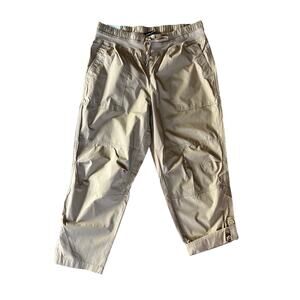 NWT Nautica Women's Cotton Roll-Tab Utility Pants, Medium, Tan, Elastic Waist