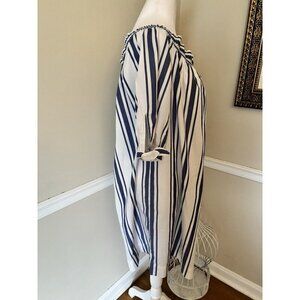 This is a women's NWT white and blue striped off the shoulder shift dress with 3/4 sleeves from Nautica, size Large.
