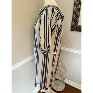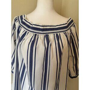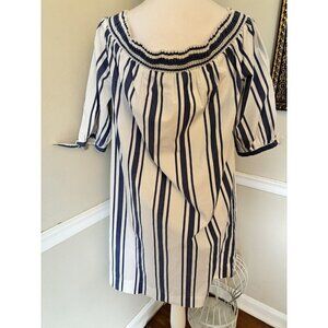NWT Nautica Womens Size L White Blue Stripe Shift Dress Off Shoulder