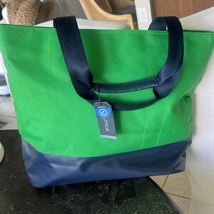 NWT Nautica Green & Navy Canvas Nautical Tote