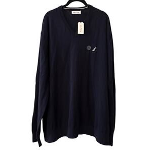 NWT Nautica navy blue vneck knit sweater size 3XL