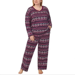 NWT Nautica Women's 2 Piece berry long sleeve Fleece Pajama Sleepwear Set