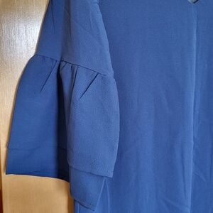 Belongsci women's navy summer dress v-neck bell sleeve shift dress. Double layered