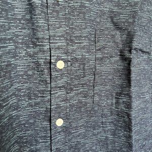 This new with tags shirt features white buttons, buttoned collar, one breast pocket, gray under cuffed short sleeves, and a fun horizontal striped-like pattern throughout.