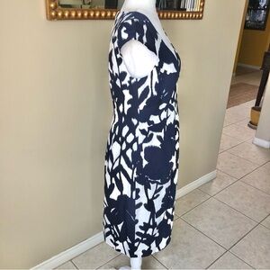 NWT Navy Blue White Floral Cocktail Special Occasion V-neck Cap Sleeve Dress 8