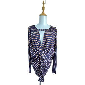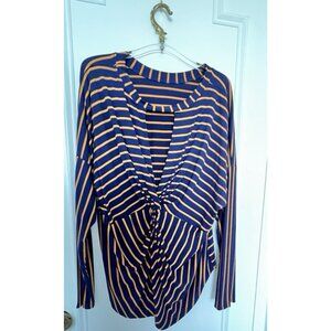 NWT Navy Mustard Top US Sz 14 Striped Rusched Blouse EU Sz 46 UK Sz 18 George