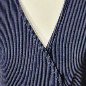 New with tag. Beautiful navy blue peplum blouse with surplice neckline. Ribbed detail. Lightweight,soft fabric. Generous sizing. Versatile item good for work or nights out on the town