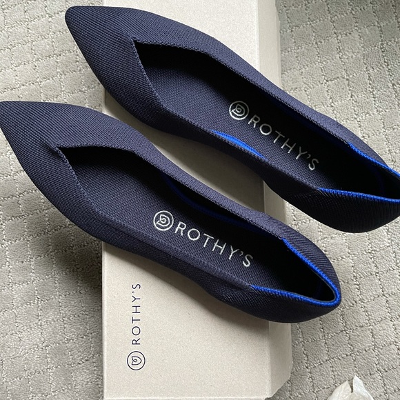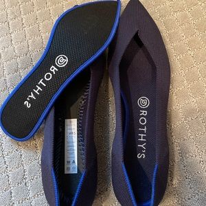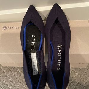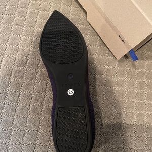 Never worn. Still have box and sticker on bottom. Navy blue point flat