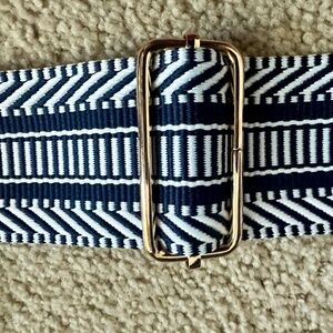 NWT Navy and White woven bag purse strap with gold accents extendable 28" to 52"