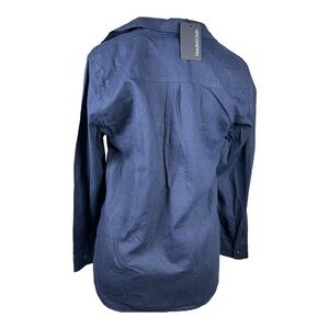 NWT Needle & Cloth Women’s Navy Blue button Front shirt long sleeve linen blend