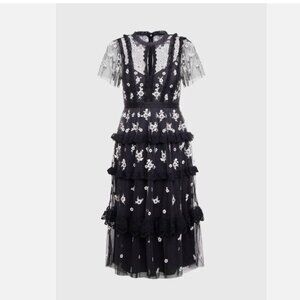 New With Tags - Needle & Thread Monochrome Ditsy Embroidered Midi Dress Graphite - Women's size US 6
