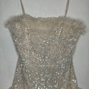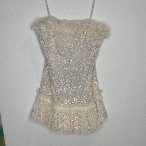 NWT Needle & Thread Regal Rose Gloss Strapless Micro Mini Dress Champagne Size14