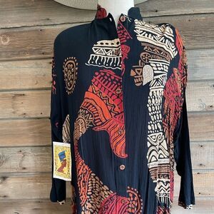 Love this amazing too by Nefertiti with great colors, beads and in an extra long style. It measures 22 inches armpit to armpit laying flat and 42 inches in length from shoulder to hem.