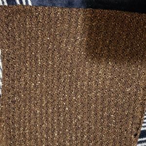 New Women's one size brown and gold Neiman Marcus 74% silk 16% polyester 10% metalic scarf. Scarf shimmers with fringe. Excellent condition no defects. 78" long 7.5" wide