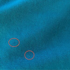 Bow design on shoulder. There is some exposed thread at the base of the bow. Please see circled point.