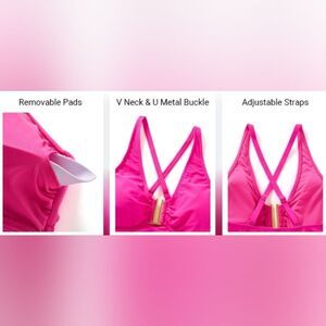 ⏭️NWT Neon Pink & Gold U-Buckle Adjustable Tankini Swim Top Medium