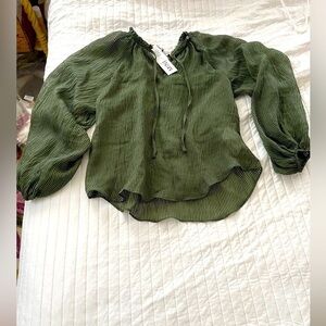 NWT Nerang Poets Blouse Khaki Striped Balloon Sleeves Size Small MSRP $112