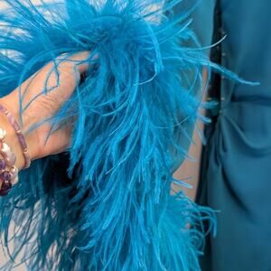 NWT Nervi Pami Teal Mini Dress with Sequin & Ostrich Feather Cuffs