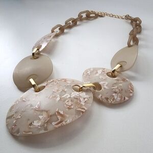 NWT Neutral Bohemian Marble Abstract Resin Chain Chunky Necklace