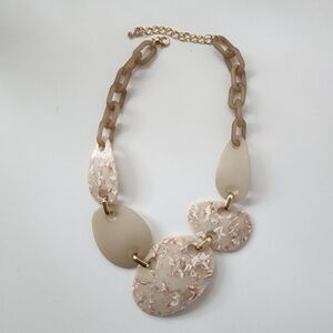 NWT Neutral Bohemian Marble Abstract Resin Chain Chunky Necklace