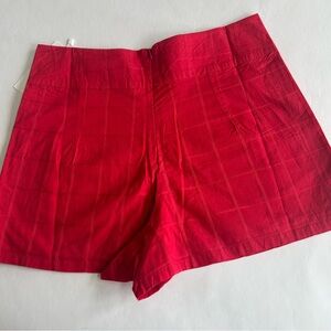 NWT Never A Wallflower Red Shorts, Windowpane Plaid, Tonal Grid Pattern, Size XS, Boutique Brand, Cotton Lined Shorts, High Waist Fit, Lightweight Summer Shorts, Side Zip Closure, Fully Lined, Breathable Fabric, Casual Chic, Made in India