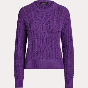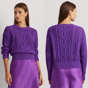 NWT New $145 Ralph Lauren Cable-Knit Cotton Crewneck Purple Sweater Size M