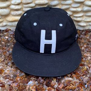 Pure cotton hat with unstructured, six panel construction. Simple and casual, the fitted cap features a contrast felt 'H' emblem to the front and contrast stitched eyelets to the crown. Complete with signature striped front panel lining and embroidered branding.