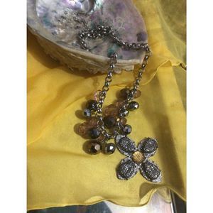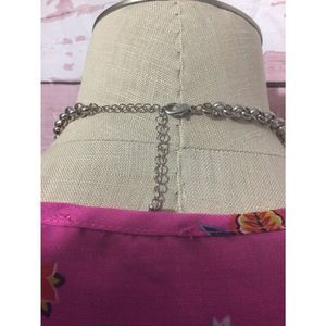 NWT New Bohemian Flower Beaded Necklace Silver & Gold Chunky Chain 20”