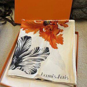 NWT New Box HERMES Tulipomanie Scarf 90cm Blanc/ Corail 100% Silk Carre Unused