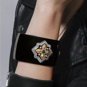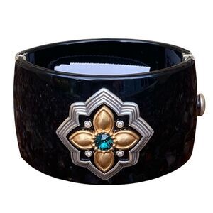 New Brighton Monarch Joy Hinged Black/Silver Gold Bangle w/Green Crystal