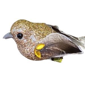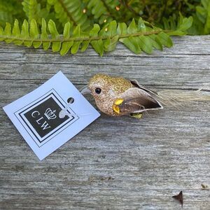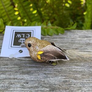 New CLW Catherine Lillywhite's Small Gold Glitter Decorative Accent Clip-On Birds with Feathers & Rhinestones