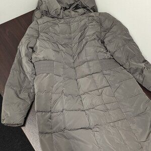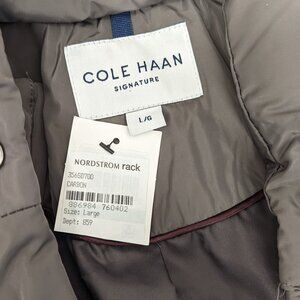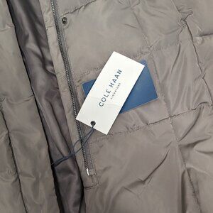 NWT New Cole Haan Long Puffer Zip bib Hooded Down Coat Carbon Grey Large