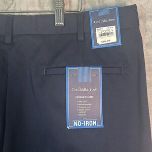 NWT New Croft & Barrow Navy Premium Pleated No-Iron Classic Pants Size 38x34
