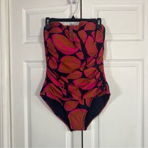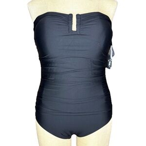 NWT New DKNY Womens XXL Black U Wire Tummy Control Bandeau One Piece Swimsuit