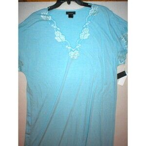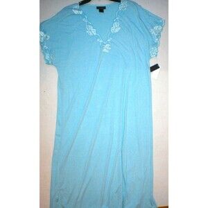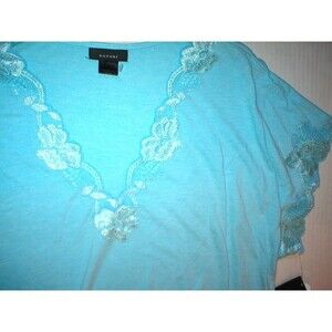 NWT New Designer Natori Night Gown Long Womens Light Blue XS Lace Detail Flower