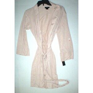 NWT New Designer Natori Short Wrap Robe Womens S Soft Sexy Belt Beige Pink Tan