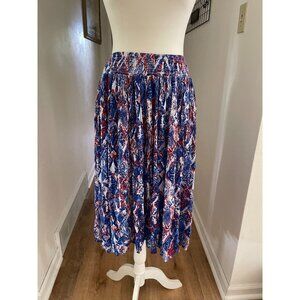 NWT New Direction Women's Midi Skirt Red & Blue Abstract Print Elastic Waist Li