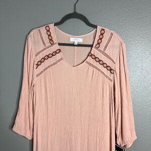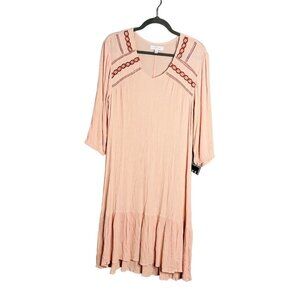 NWT New Directions Embroidered Drop Waist 3/4 Sleeve Boho Dress Small