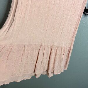 ruffle hem, gathered elasticized sleeves, midi boho dress, bohemian, embroidery, flowy, relaxed, light, lightweight, breathable, spring dress, summer dress, v-neck dress