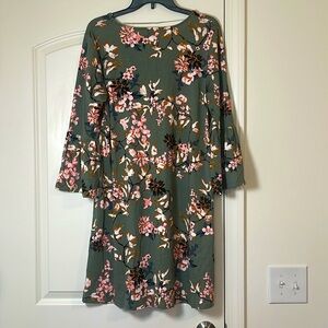 NWT New Directions Floral Sage Dress with Bell Sleeves Size XL NWT