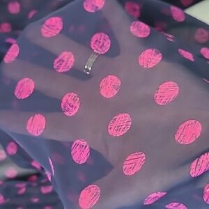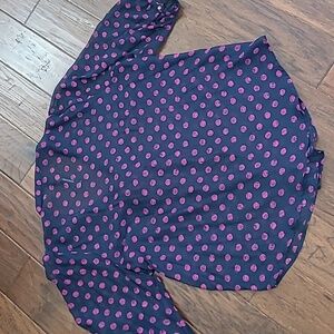 NWT New Directions Sheer Navy Blouse with Pink polka-dots size 2X